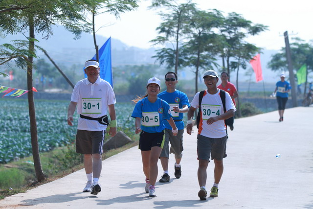 30公里,60華里,30000米,對非專業(yè)選手來說,絕對是不小的挑戰(zhàn)。臨近賽事,有同事私底懷疑——這個隊伍能否完成?殊不知,曾幾何時大家早已聞雞起舞:兩位主力一位每天清晨晨跑1小時,一位每日傍晚必鍛煉5.5公里,團隊中唯一的女選手亞梅,則充分利用了“職務之便”,在日常工作的跑單中悄悄融入了縱走的力道。