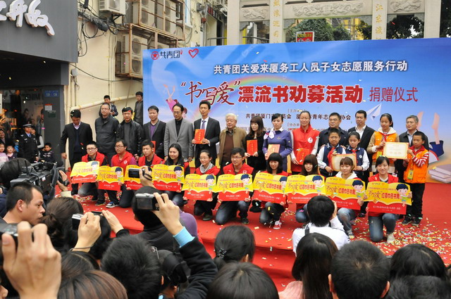 3月4日下午,在中山路步行街的活動現(xiàn)場,集團(tuán)的志愿者們將整理好的六大箱愛心圖書贈送給了來廈務(wù)工人員子弟學(xué)校,并參加了現(xiàn)場的“書寫愛”漂流書勸募活動,向社會傳遞我們象嶼人的公益和愛心。