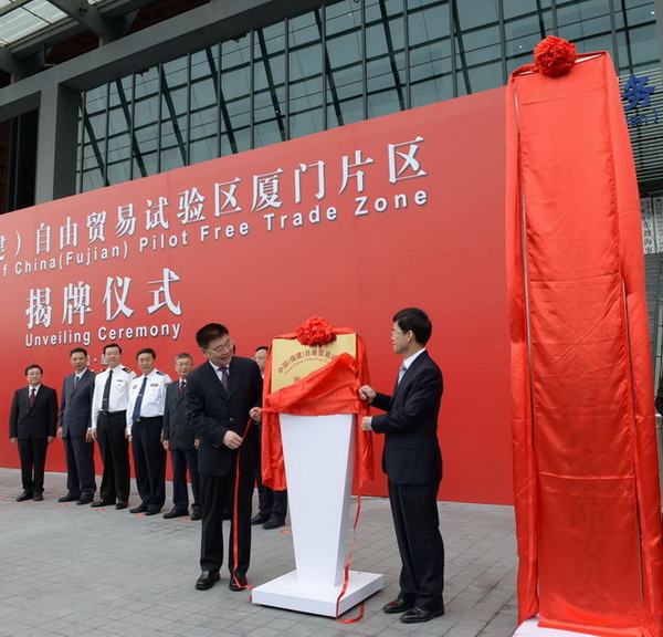 中國(福建)自由貿(mào)易試驗區(qū)廈門片區(qū)在兩岸貿(mào)易中心舉行揭牌儀式