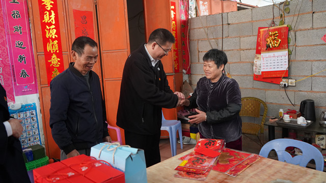 “大姐,最近身體還好嗎,家里怎么樣?”象嶼股份職能本部黨支部、象嶼物產(chǎn)、象嶼化工、象嶼礦業(yè)等12家黨支部書(shū)記、委員及黨員代表,帶著慰問(wèn)品及慰問(wèn)金等新春禮物,來(lái)到幫扶對(duì)象郭大姐家中“走親戚”,會(huì)講同安本地方言的黨員同志貼心地當(dāng)起了翻譯。象嶼股份副總經(jīng)理、象嶼化工總經(jīng)理張軍田同志專(zhuān)門(mén)為70多歲的結(jié)對(duì)對(duì)象卓大姐挑選了容易消化的面線(xiàn)等慰問(wèn)品。