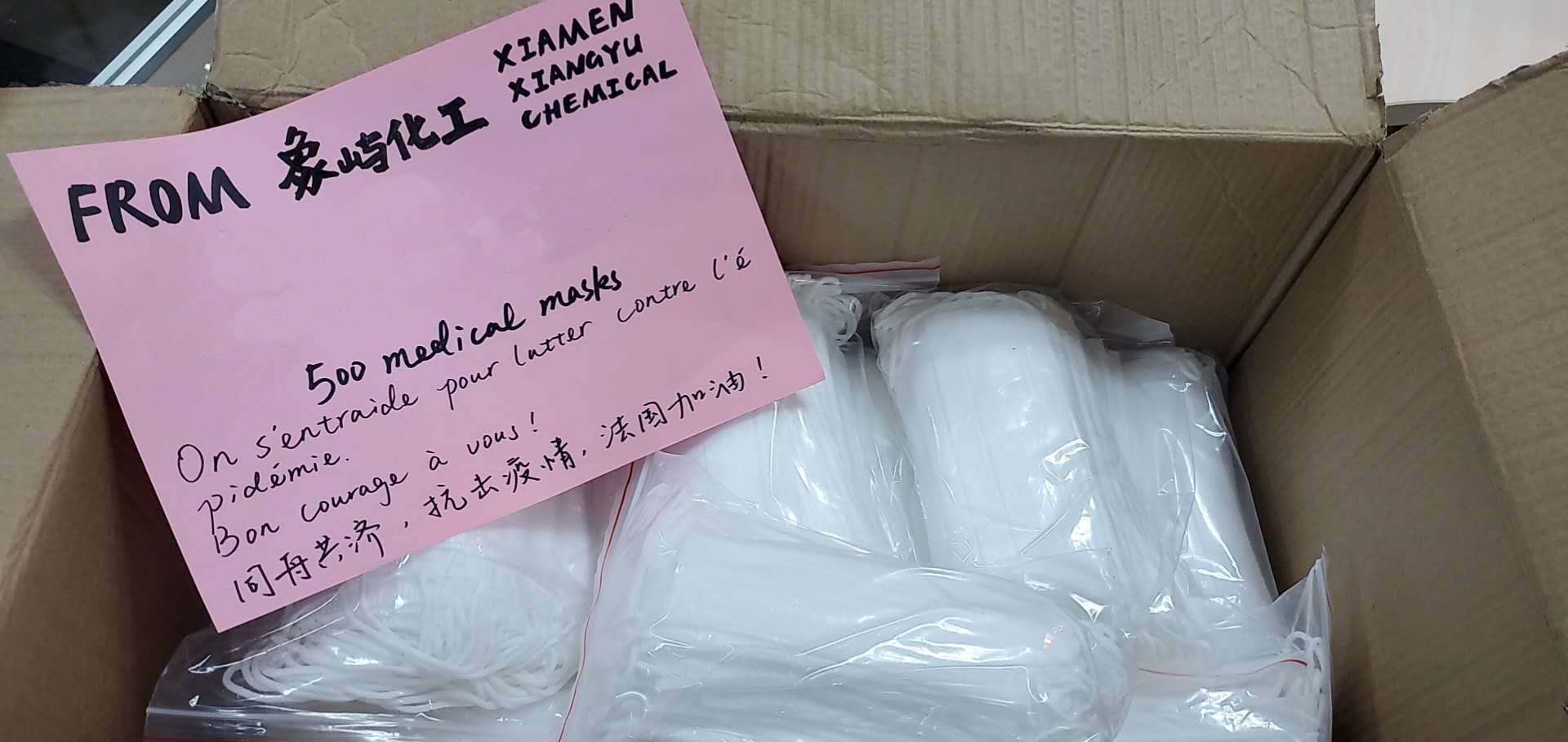 象嶼化工寄給法國(guó)友商的口罩