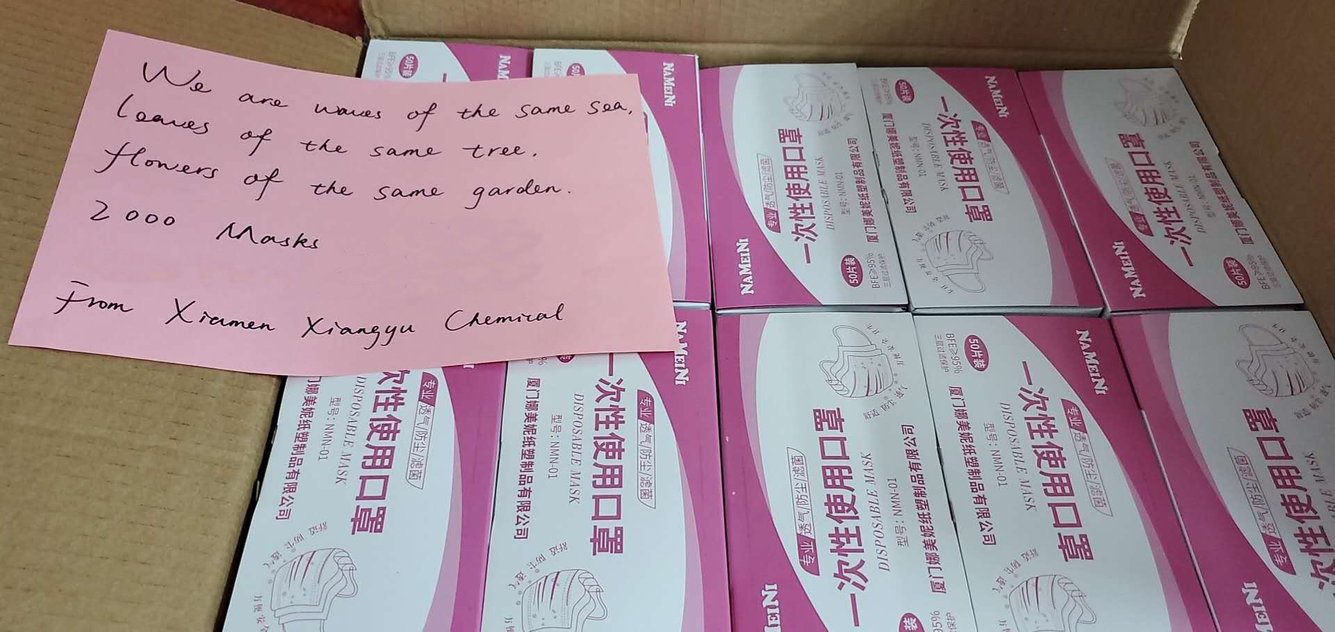 在2月10日象嶼復(fù)工的第一天,象嶼股份旗下公司象嶼資源便收到了開工第一禮——來自韓國(guó)LG INTERNATIONAL CORP.的近500個(gè)口罩,這份情誼象嶼人銘記于心。3月20日,在了解到韓國(guó)疫情日益嚴(yán)峻之后,象嶼資源心懷感恩,多方聯(lián)系協(xié)調(diào),以最快的速度向韓國(guó)LG INTERNATIONAL CORP.寄去了5000個(gè)口罩,以“象嶼溫度”溫暖友商,馳援海外抗疫。