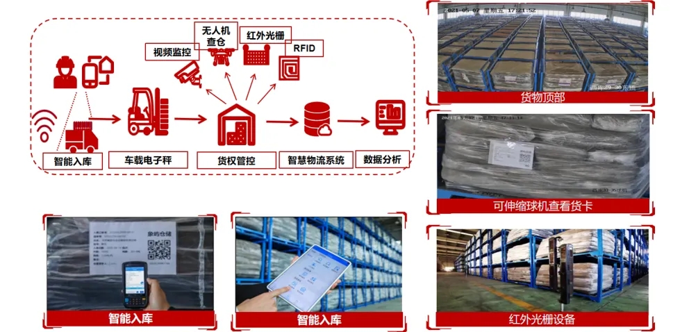 在倉庫進(jìn)場、稱重、收費、存儲等環(huán)節(jié),努力推動完全無紙化操作,操作人員只需利用手持移動設(shè)備掃碼進(jìn)行數(shù)據(jù)錄入,實現(xiàn)智能入庫、盤貨、出庫等動作。倉庫同步應(yīng)用視頻監(jiān)控識別、紅外光柵、云端等技術(shù),客戶可通過移動終端就能進(jìn)行實時查詢或歷史查詢,讓貨權(quán)看得住、管得住。