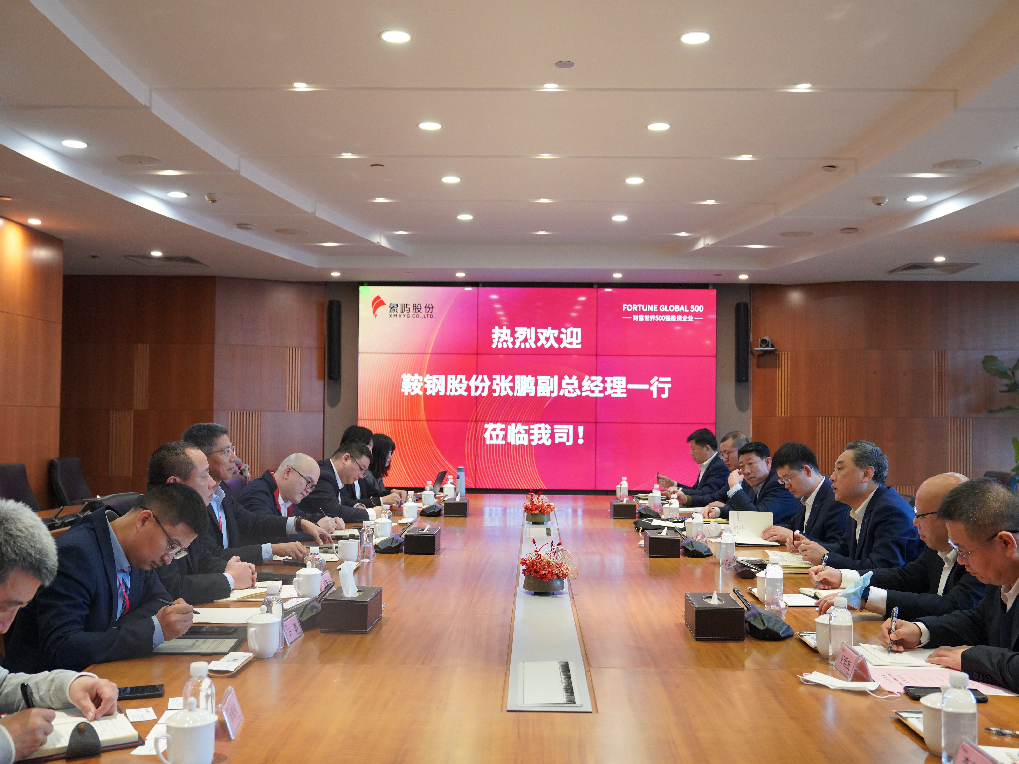 2月27日,鞍鋼股份有限公司副總經理張鵬、本鋼集團總經理助理蔣光煒一行到訪象嶼股份,象嶼股份黨委副書記、總經理齊衛(wèi)東,象嶼股份黨委委員、副總經理童曉青等熱情接待,并陪同參觀文化空間。